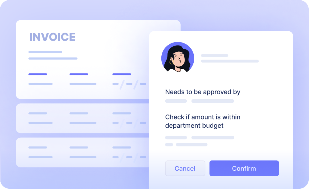 Set up custom accounts payable approval policies with any combination of approvers, spend limits and department structures. Don’t want the hassle of creating invoice approval policies? Let our AI handle it.