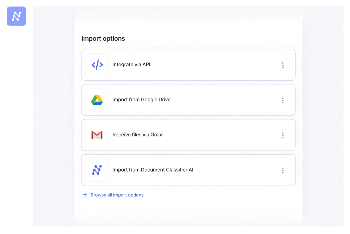 Capture or import data from any source or in any format including, images, PDFs, scans, paper documents, emails, cloud storage, APIs and more.