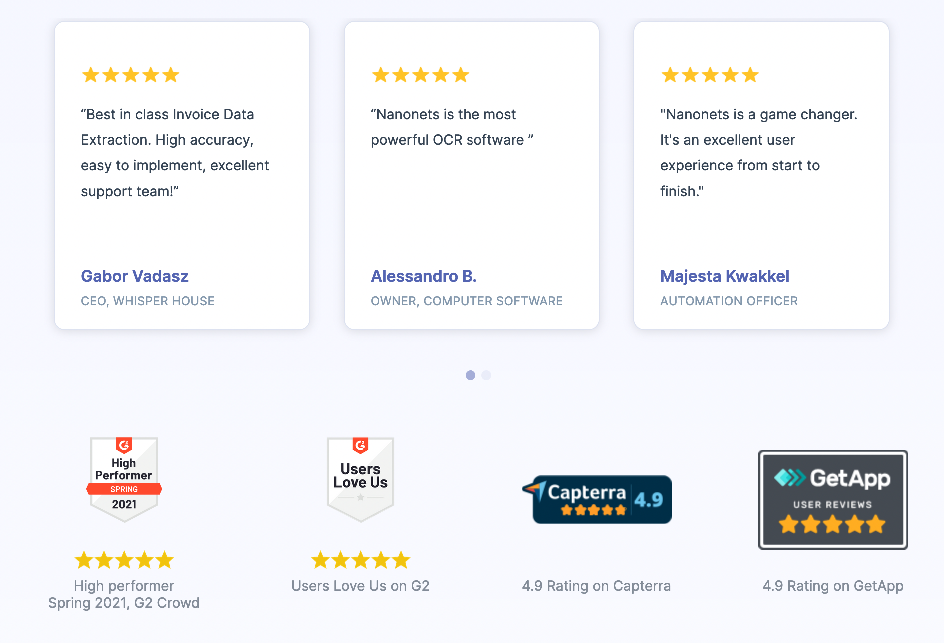 Nanonets is an intelligent automation platform that is highly rated by customers on many B2B review platforms.