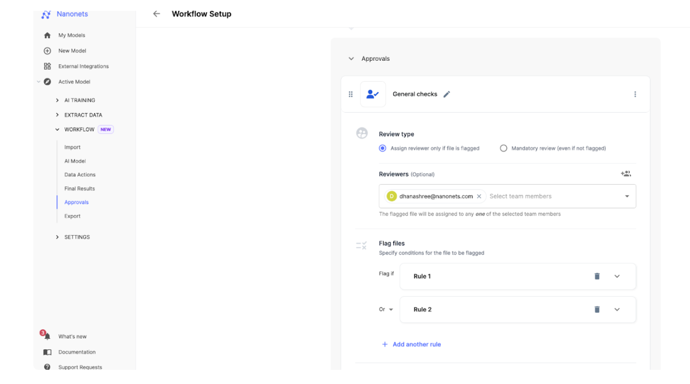 Approvals (Streamlined): Approvals with Nanonets are no longer a bottleneck. They become flexible and live where your organization does—whether that's on email, Slack, or Teams. This eliminates the need for disruptive phone calls and the all-too-familiar barrage of reminders.
