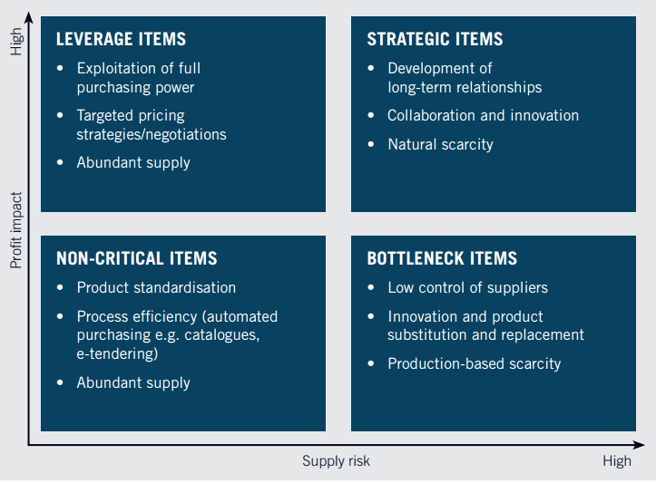 Classify suppliers into strategic partners, leverage suppliers, bottleneck suppliers, and non-critical suppliers. Develop tailored strategies for managing each category, focusing on building deeper relationships with strategic and leverage suppliers.