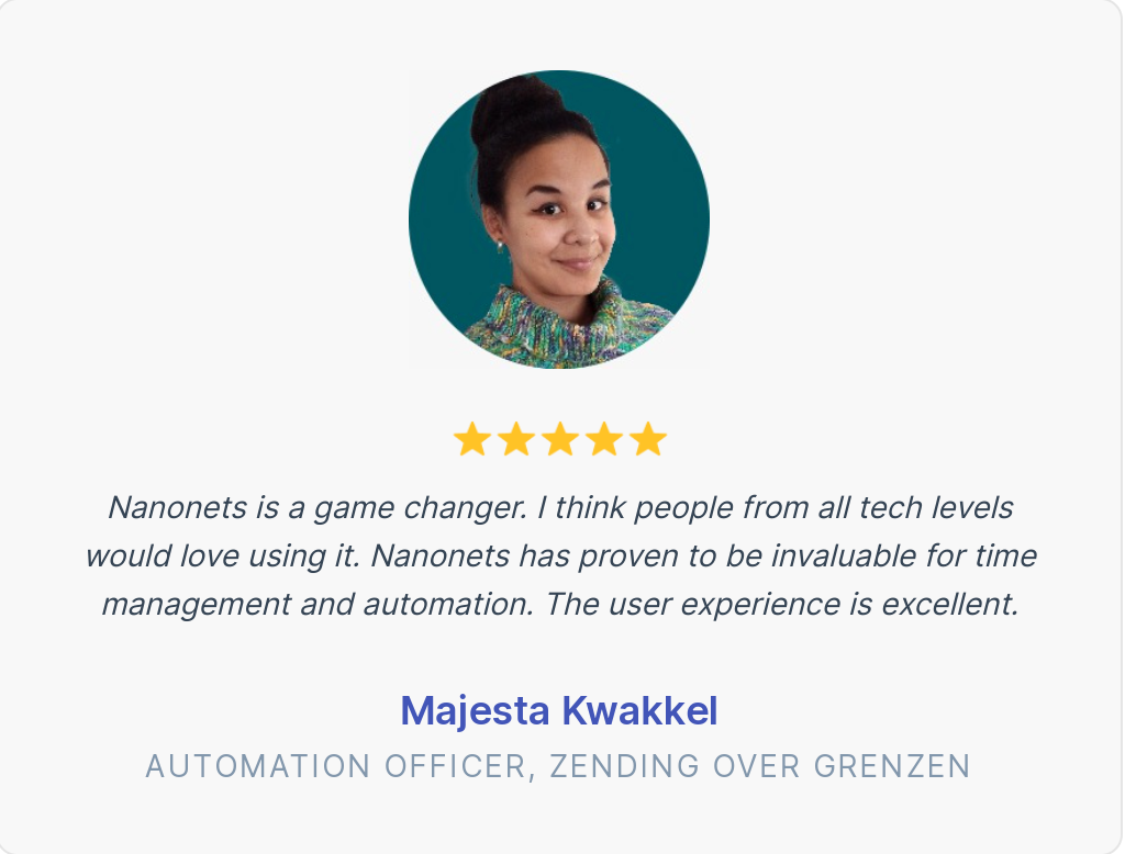 Nanonets AI goes a step further than most AI PDF data extraction solutions by allowing users to use natural language to describe the data that they want to extract from a document. With Nanonets, start extracting structured data from documents right from the get-go, without any training.