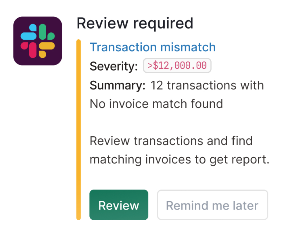 Nanonets provides real-time monitoring and alerts to keep you informed about the progress and status of expense reconciliation activities. You can receive notifications for completed reconciliations, pending tasks, exceptions, discrepancies, or anomalies, allowing you to take timely action and address issues proactively.