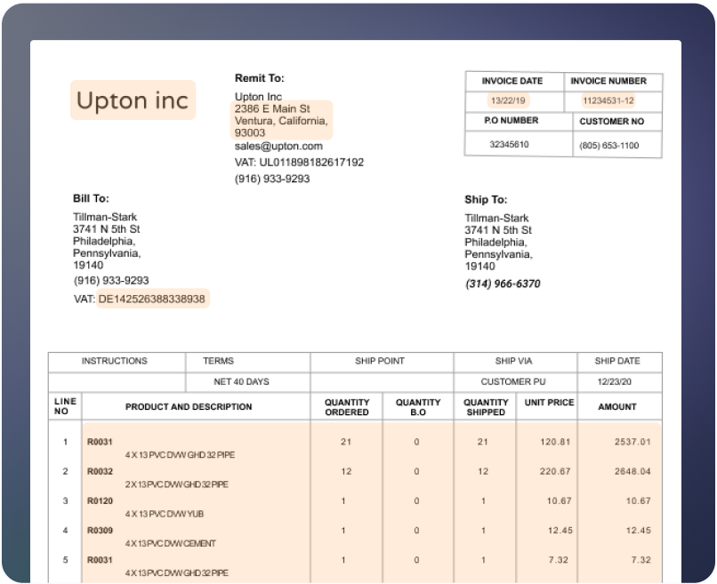 Request a DemoNo need to spend time training an invoice OCR model from scratch - our solution already recognizes a wide variety of invoice fields.