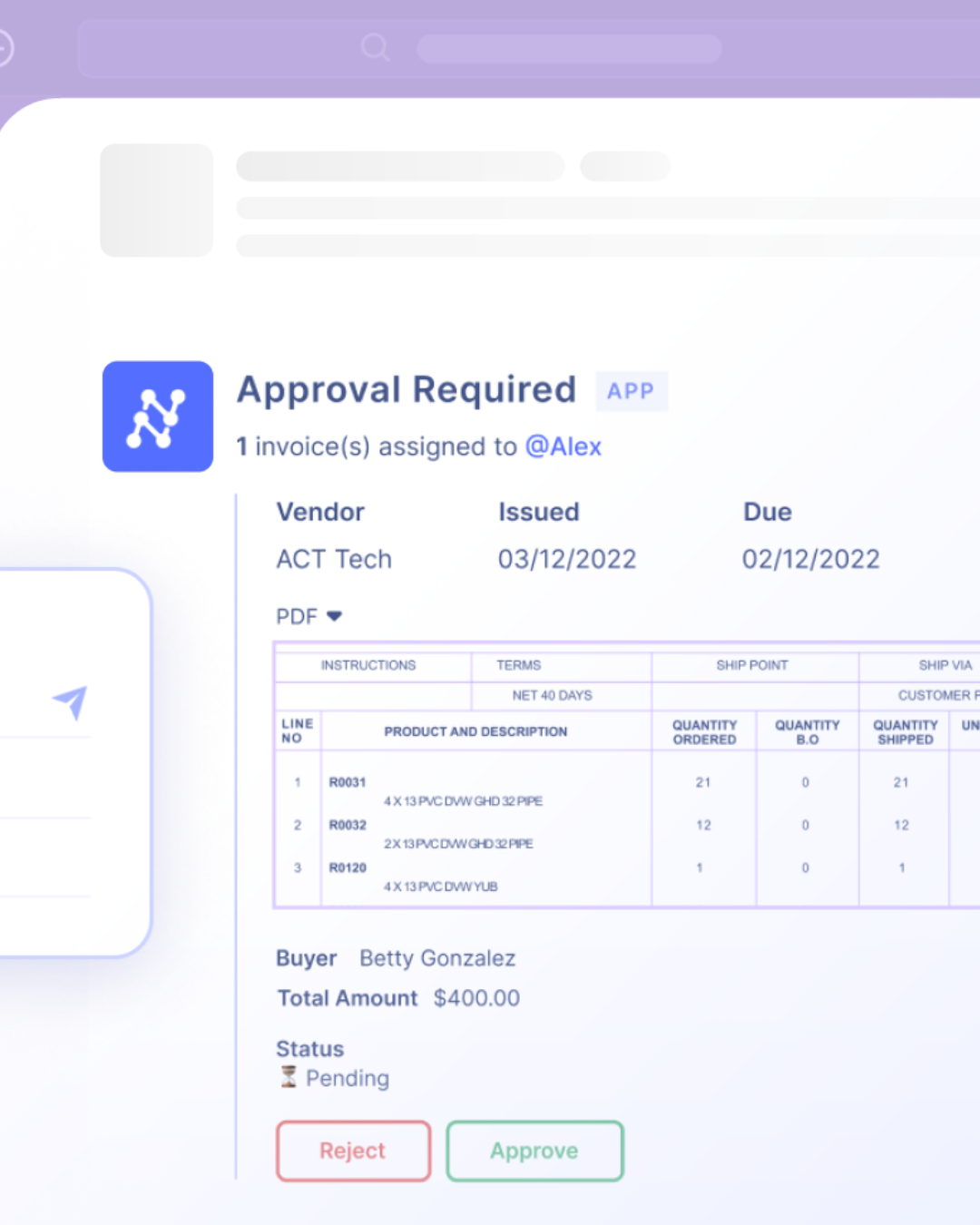 AI that automatically reads invoices and syncs the right information. And sends you real-time notifications for invoices that need your attention.
